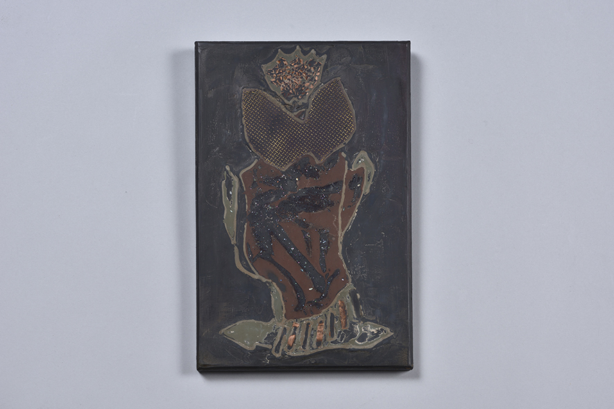 合板に漆、布、顔料、真鍮、銅、貝粉