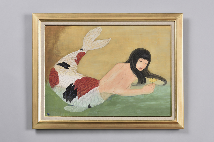 人魚が誰かに恋をしているのか、または人魚が地上にある木の葉を見つけて陸の様子に想いを馳せているのか、鑑賞された方が自由に想像できる余地を意図して制作しました。