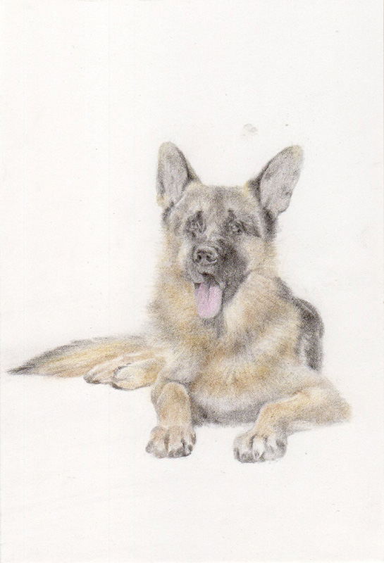 ジャーマン・シェパード・ドッグを描きました。動物が好きな方や子供がみたらどのような反応をするのか思い浮かべながら、おもいを込めて描いた小さな作品です。お子様がいらっしゃる方や、大切にしていただける方のお手元に置かれたらとても嬉しいです。